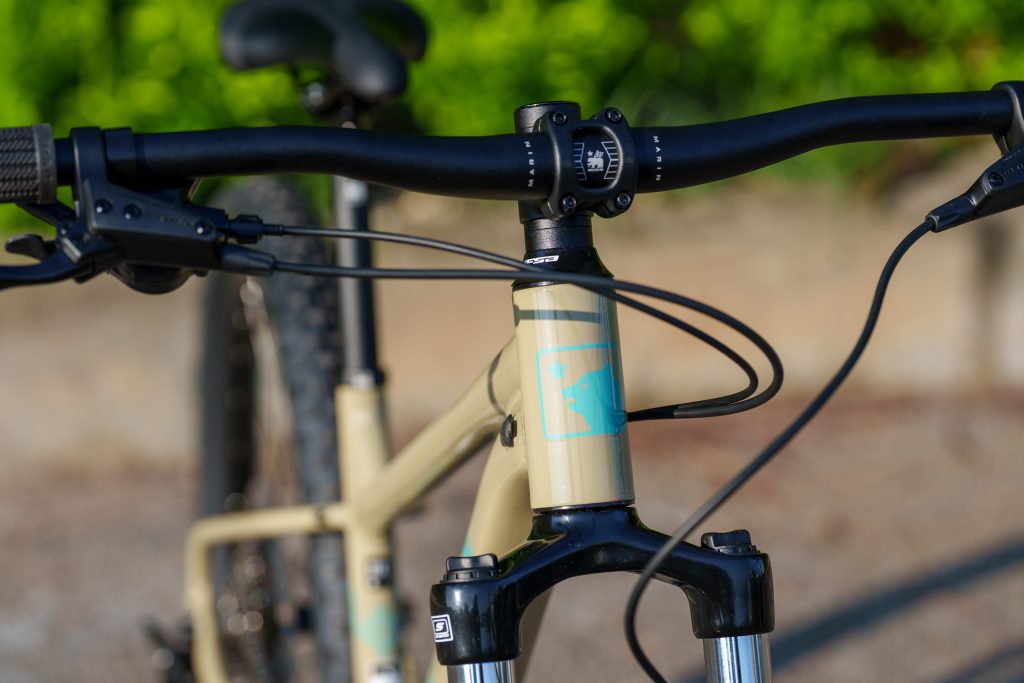 Điểm đặc trưng của các dòng xe Marin chính là hình học (geometry) cực kỳ thông minh. Khung nhôm Series 1 6061 của Bolinas Ridge 2 2025 được thiết kế với gióng ngang thấp (Low Standover).