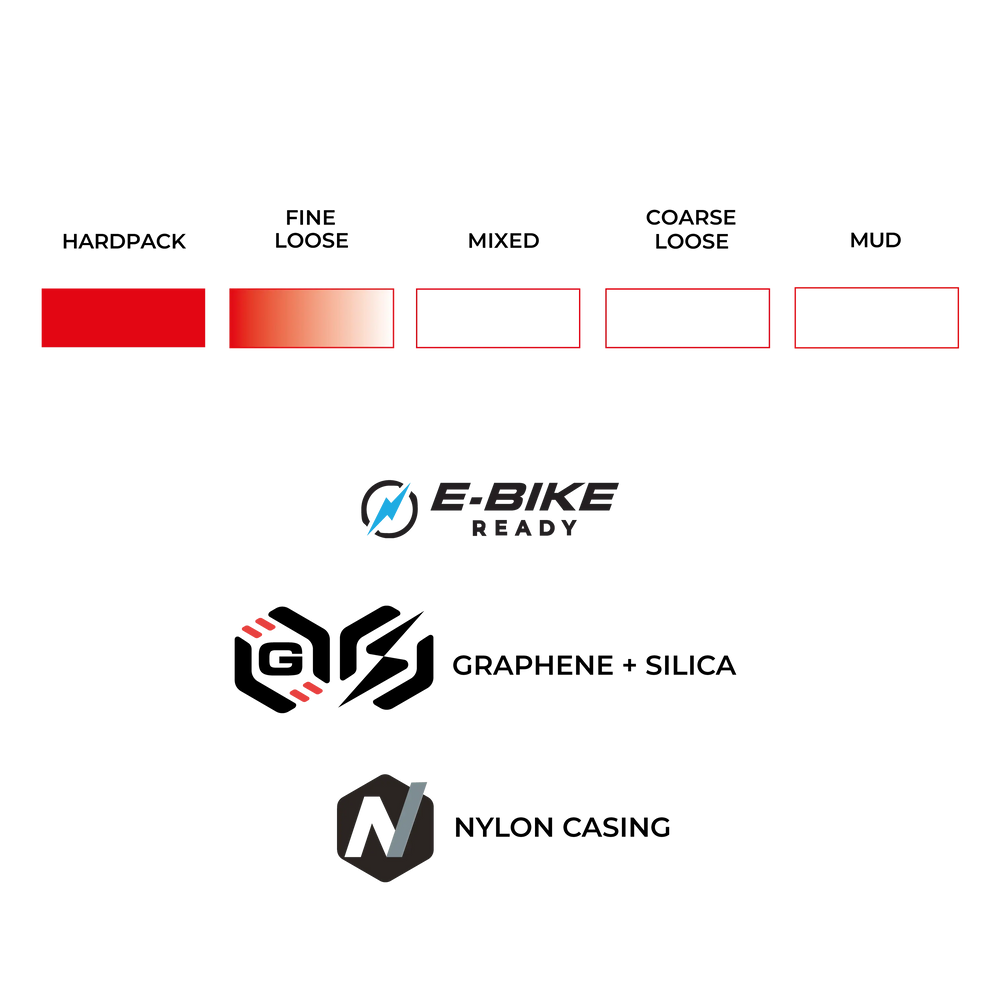 Công thức Race Formulation tiên tiến kết hợp Graphene + Silica tạo nên sự kết hợp hoàn hảo giữa độ bám đường, tốc độ và độ bền. Từ những đoạn leo dốc mạnh mẽ, đến những đoạn xuống dốc, cho đến những cú bứt tốc bứt phá khỏi yên xe, hợp chất này giúp bạn bám đường và tiến về phía trước.
